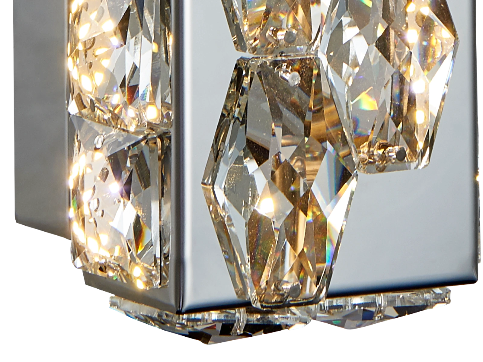 Svietidlo je vyrobené z vysokokvalitného nerezového kovu s chrómovou povrchovou úpravou, doplnené o precízne brúsené kryštály, ktoré umocňujú odraz a lom svetla. Použitá technológia spracovania zabezpečuje dlhodobú stabilitu materiálu a zachovanie jeho estetického vzhľadu.