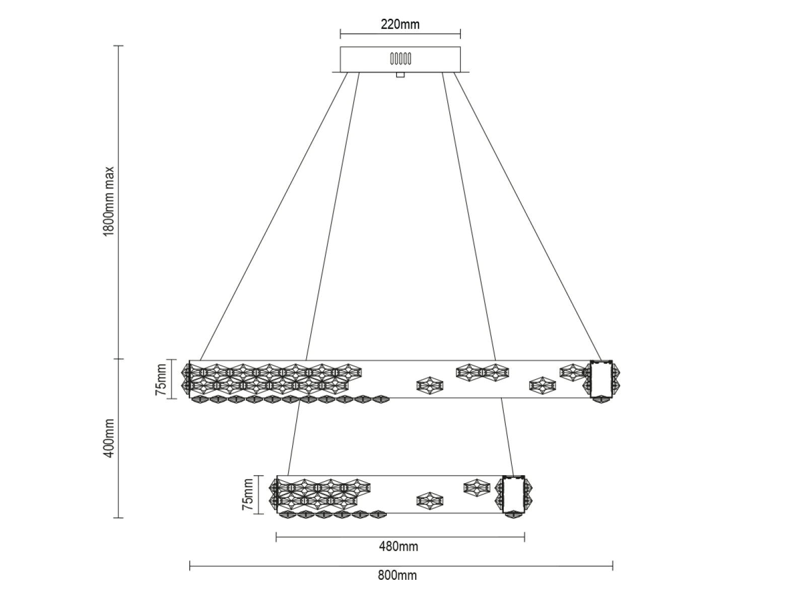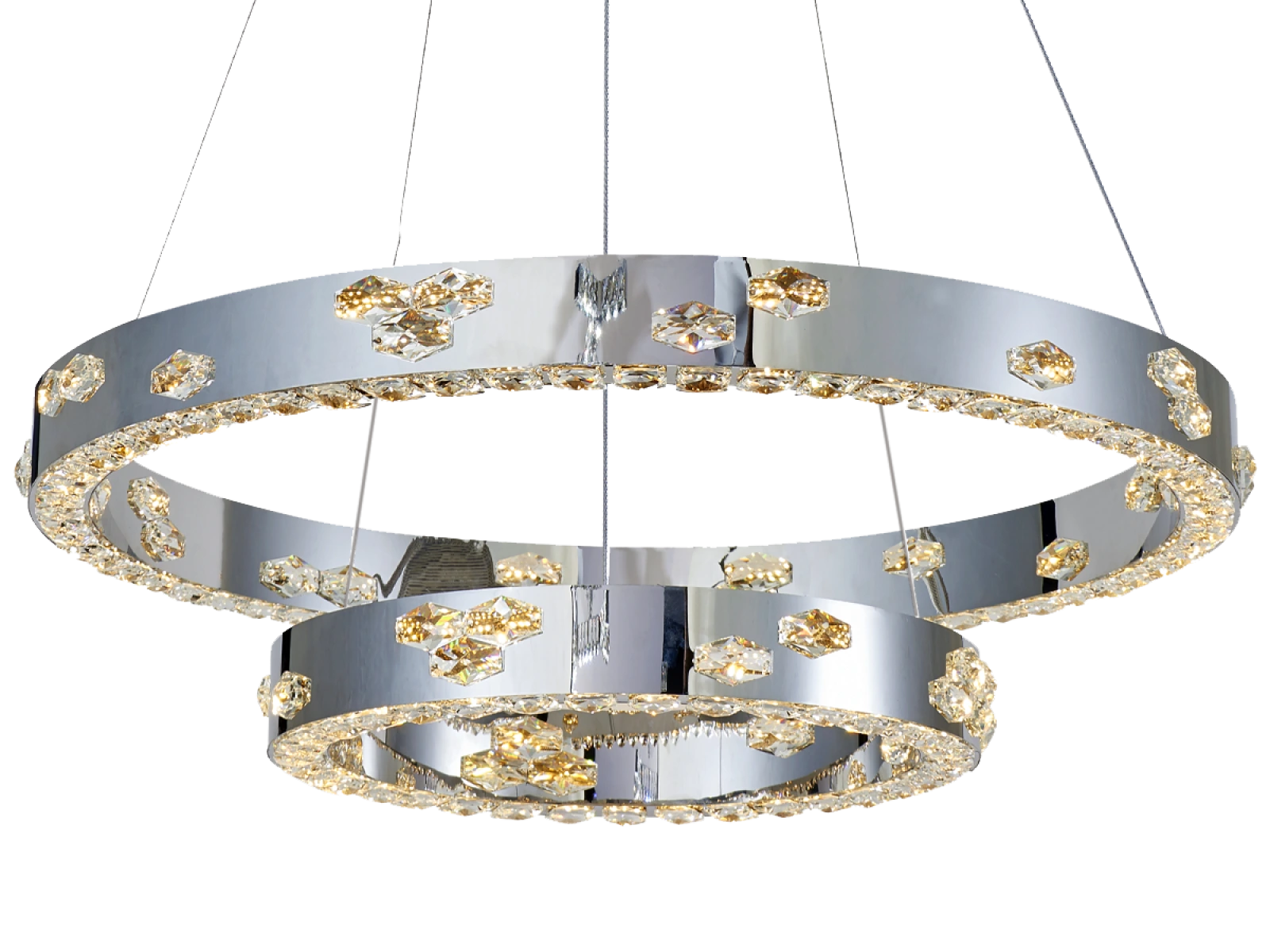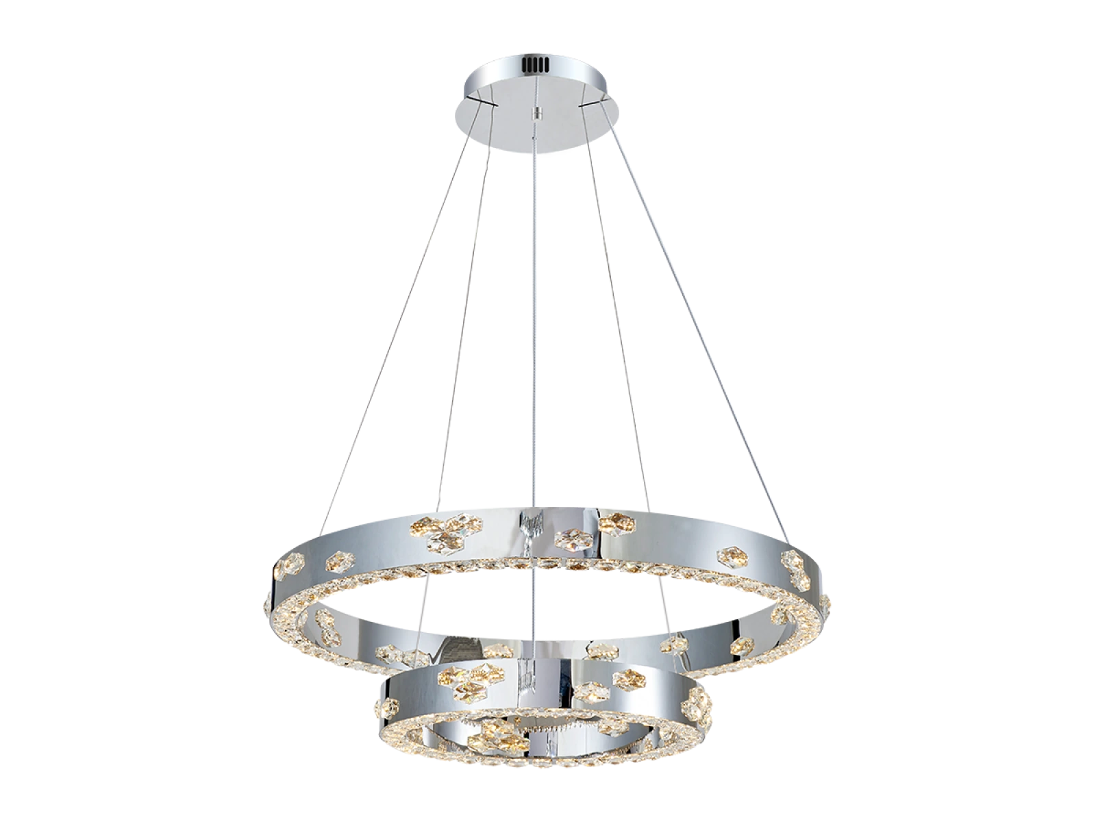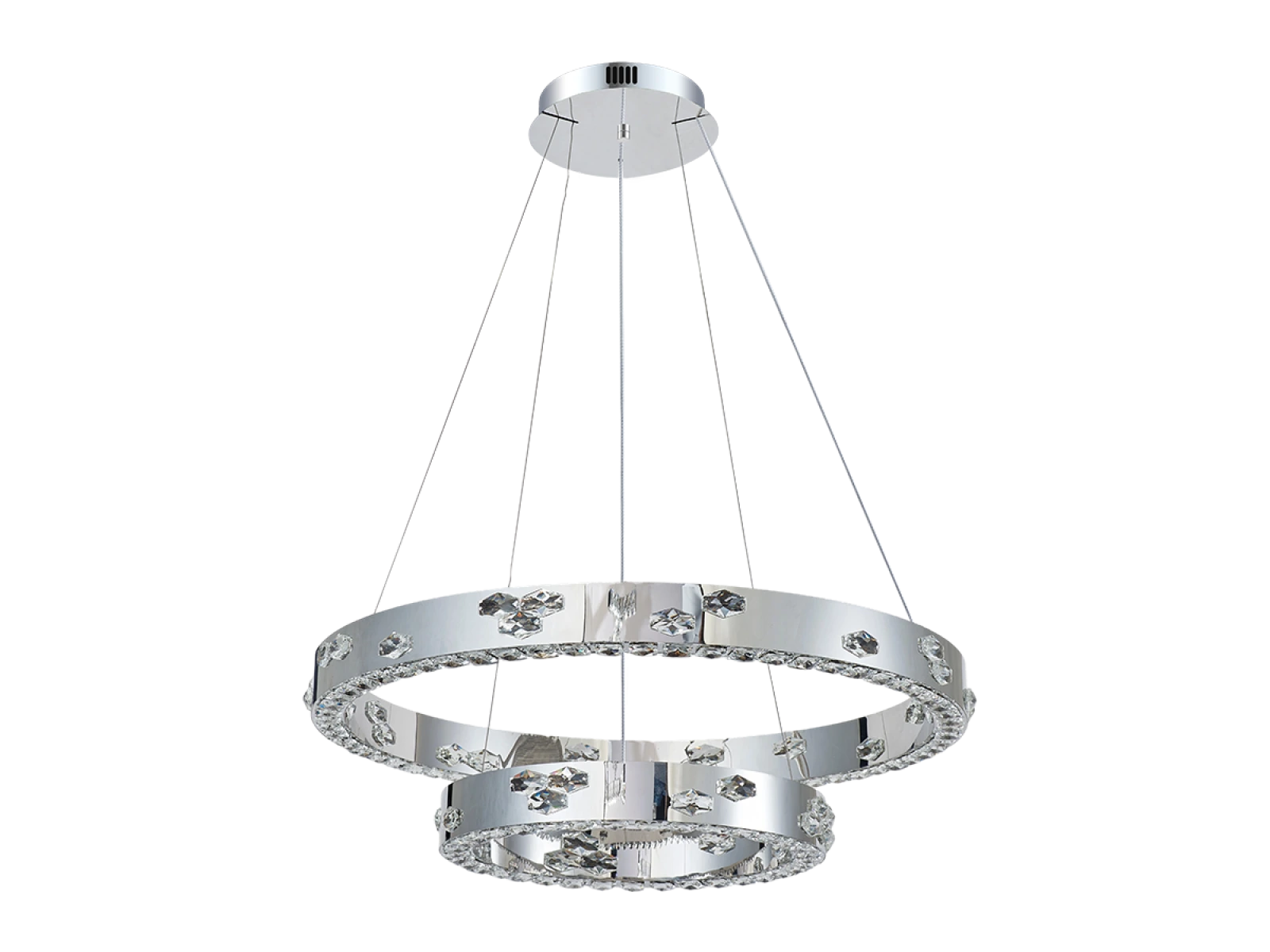 Svietidlo je vyrobené z vysokokvalitného nerezového kovu s chrómovou povrchovou úpravou, doplnené o precízne brúsené kryštály, ktoré umocňujú odraz a lom svetla. Použitá technológia spracovania zabezpečuje dlhodobú stabilitu materiálu a zachovanie jeho estetického vzhľadu.