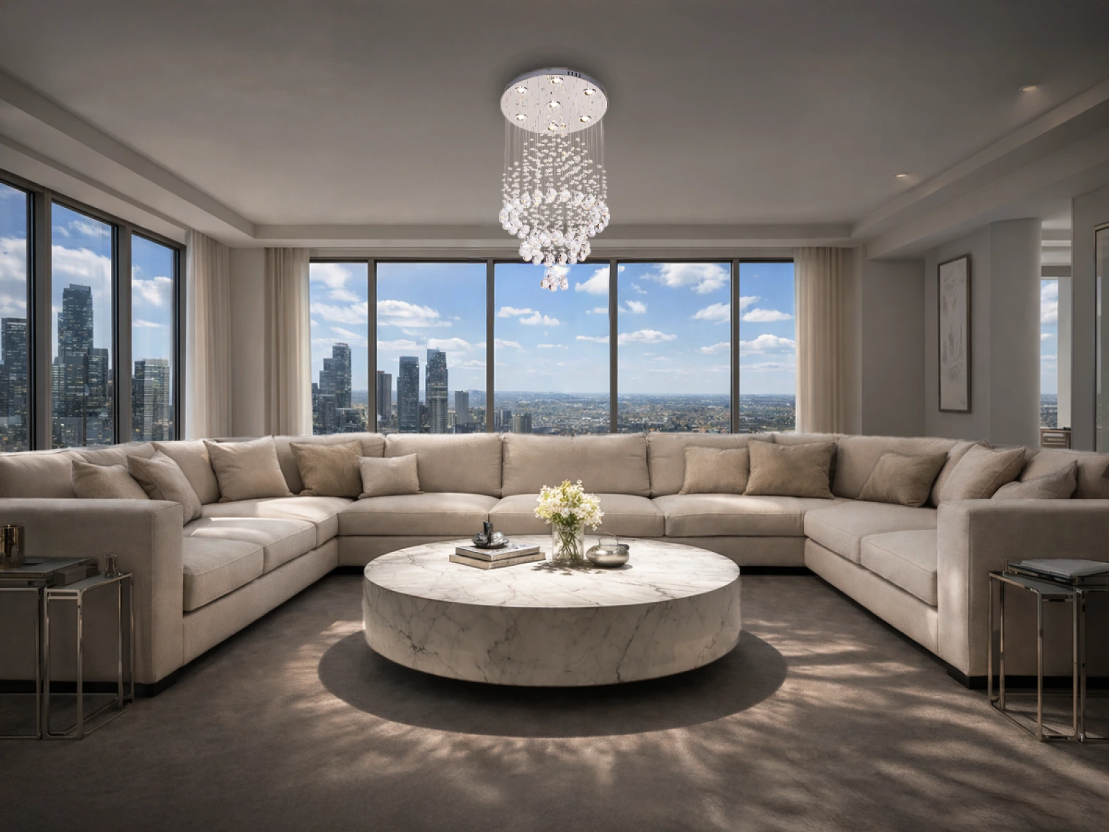 Chromová stropní základna působí moderně a v kombinaci s LED technologií zajišťuje úsporné a spolehlivé osvětlení s dlouhodobým provozem. Svítidlo je vhodné do obývacích pokojů, chodeb, hal nebo ložnic.