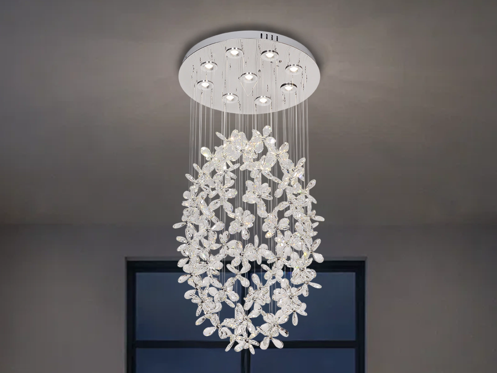 LED svítidlo s dekorativními křišťály značky NEDES působí lehce a elegantně. Světlo procházející broušenými prvky vytváří příjemnou atmosféru a decentní lesk v interiéru.